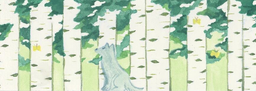 おおかみを描いた小さい水彩画が入ったキーホルダーです。