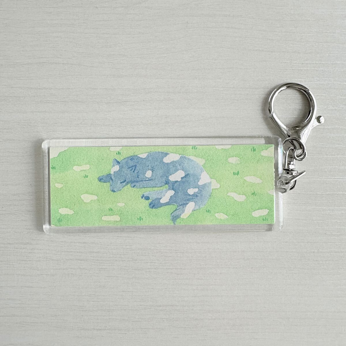 おおかみを描いた小さい水彩画が入ったキーホルダーです。